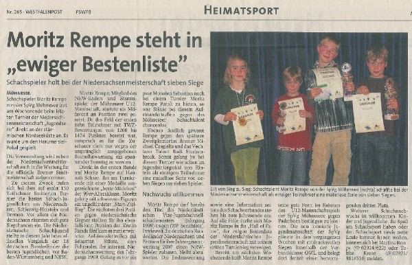 - Schachresultate finden sich im Sportteil der Zeitungen